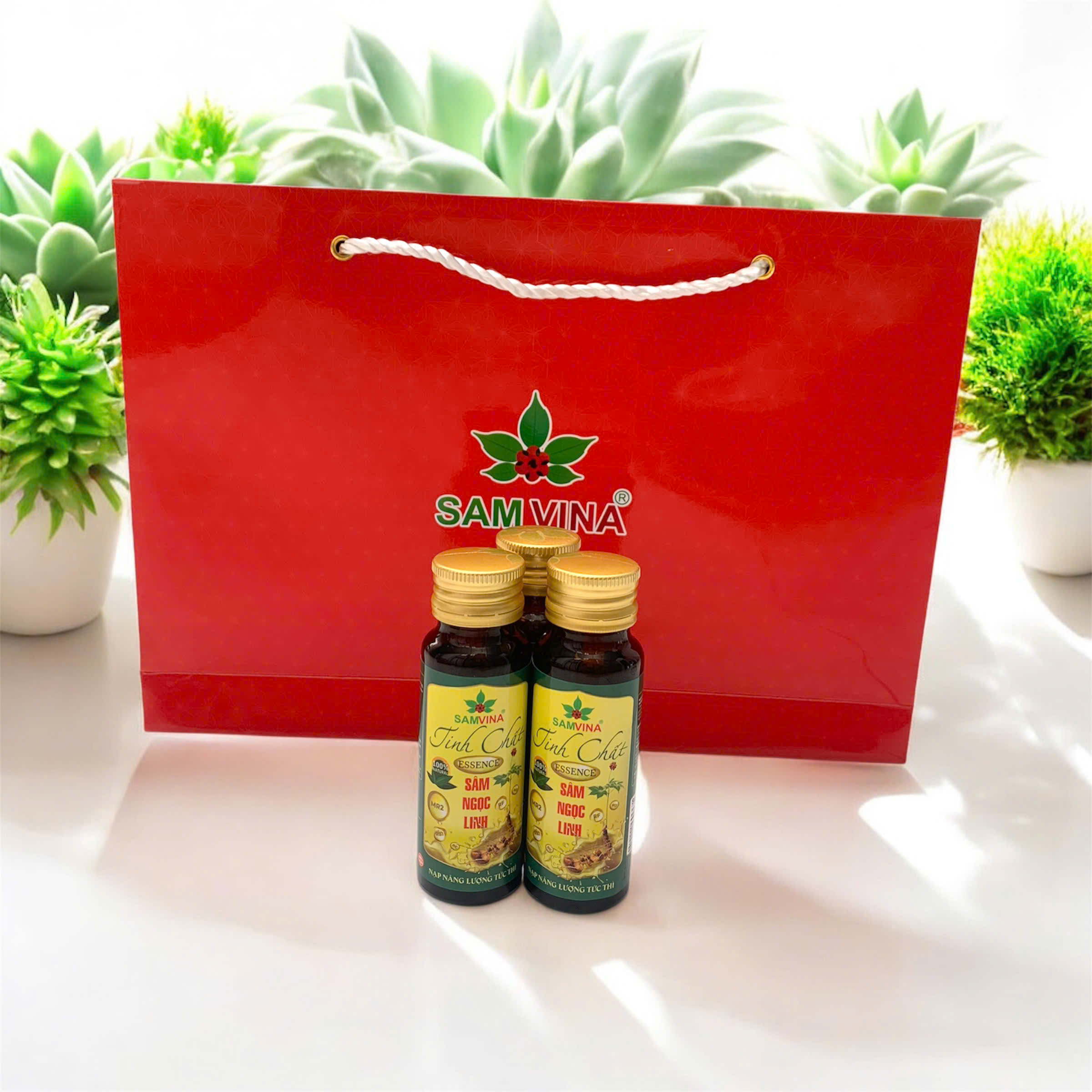 Tinh chất Sâm Ngọc Linh được chiết xuất từ củ, thân và lá Sâm Ngọc Linh, với nhiều hoạt chất quý hiếm giúp cơ thể con người được bù đắp và bổ sung năng lượng sau những ngày lao động hoặc quá trình hoạt động thể chất quá độ, trong thành phần Sâm Ngọc Linh chứa các hoạt chất quý hiếm như: